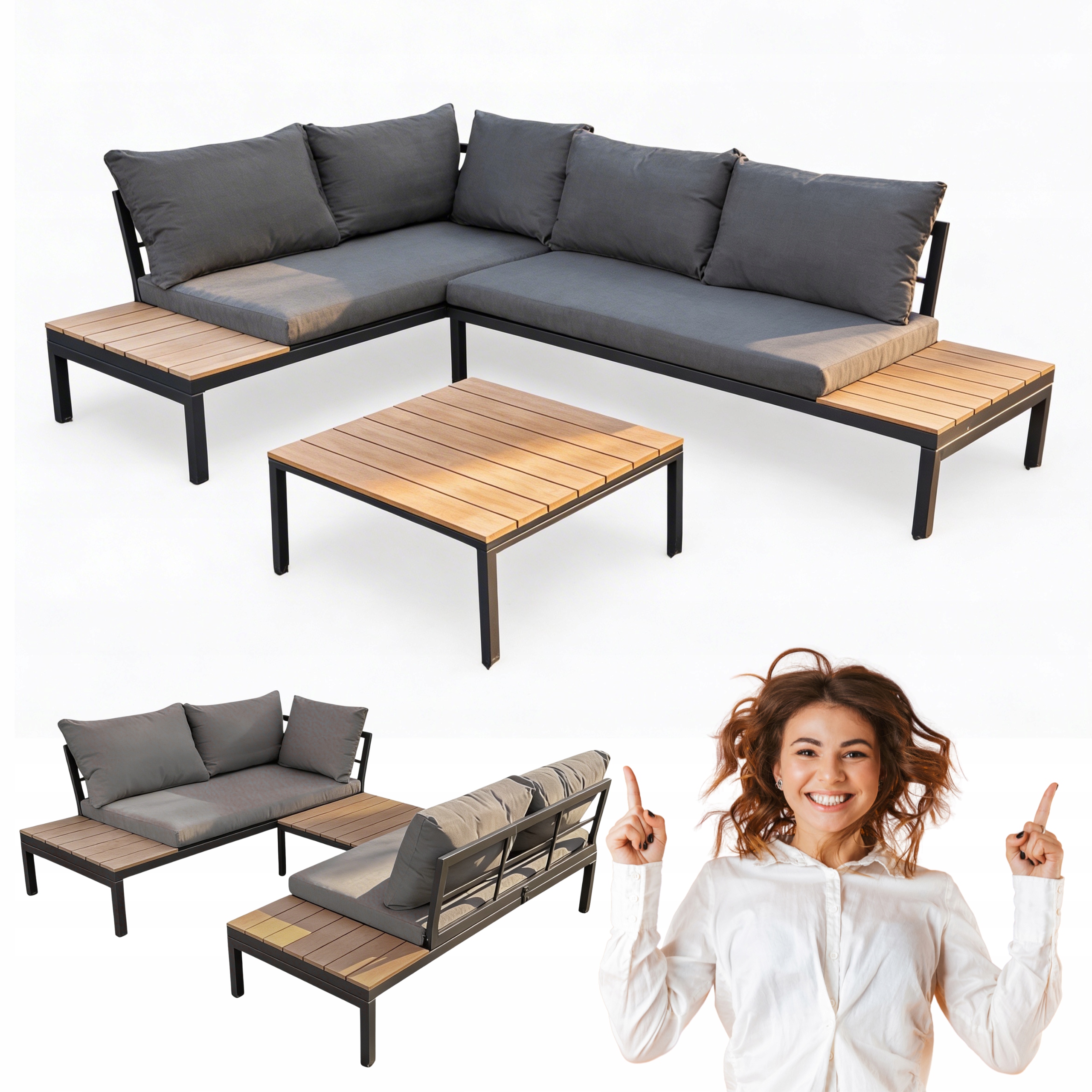 Możesz korzystać z niego jako narożnik lub rozłożyć go,  zamieniając narożnik dwie sofy i stolik.